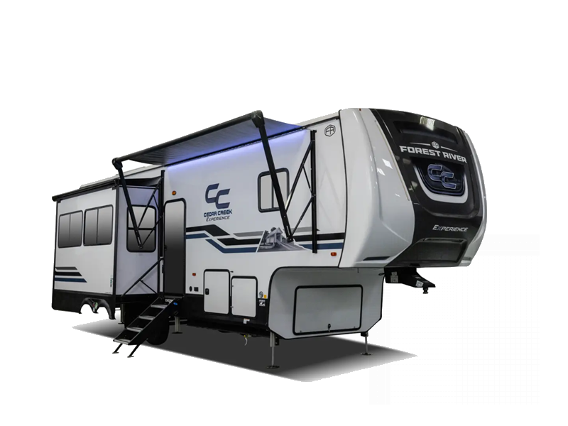 The Cedar Creek Experience is a new fifth wheel from Forest River that offers a luxury camping experience at an affordable price. Several floorplan options mean there is a layout that will appeal to everyone. High-end design elements and a spacious interior will make you feel like you are living your best life!