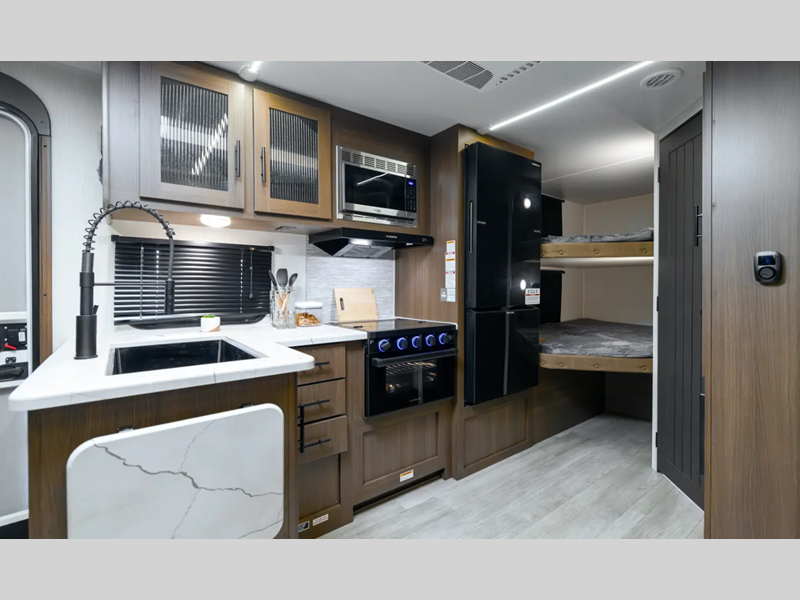 Sleeps 8 Slides 1 Number Of Bunks 2 Available Beds Murphy Refrigerator Type 12V Refrigerator Size 10 cu ft Number of Awnings 1 Water Heater Type On Demand Awning Info 15' Shower Type Standard Solar Wattage 200 watts Similar Floorplans