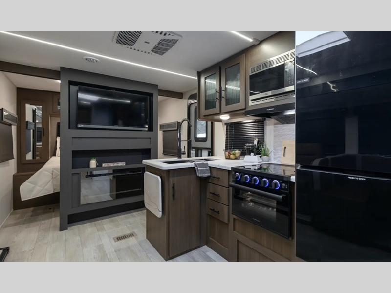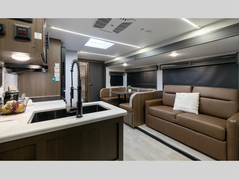 The 2" thick Vacuum-Bonded sidewalls found within the Maxx Insulation Package are ultra durable, and there are 12V thermostatically controlled heat pads on all holding tanks for added protection from the climate. The Dynamic Technology Package includes a 200W expandable roof-mounted solar panel, backup camera prep, and battery disconnect for added convenience. You will also enjoy the Peak Package with solid surface kitchen countertops, a power tongue jack, and an on-demand water heater.