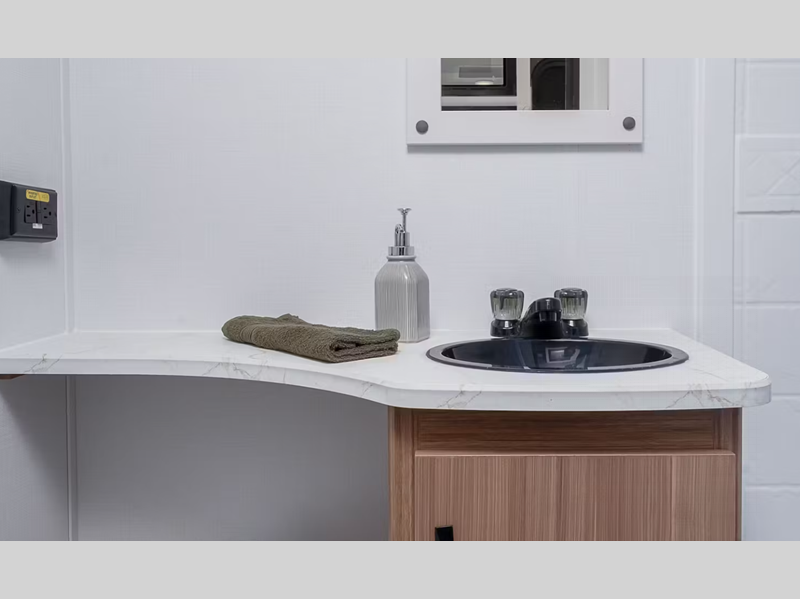 - Residential-style bathroom countertops