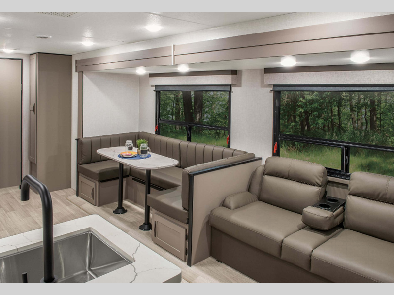 Each is built with a NXG frame providing a strong, lightweight, and consistent foundation, one-piece, seamless, Tufflex roofing material that you can walk on, and an aerodynamic front profile. The KZ Advantage Package and Convenience package are mandatory giving you even more features such as linoleum throughout, Beauflor flooring in slide outs, and seamless countertops with a deep undermount stainless steel kitchen sink.