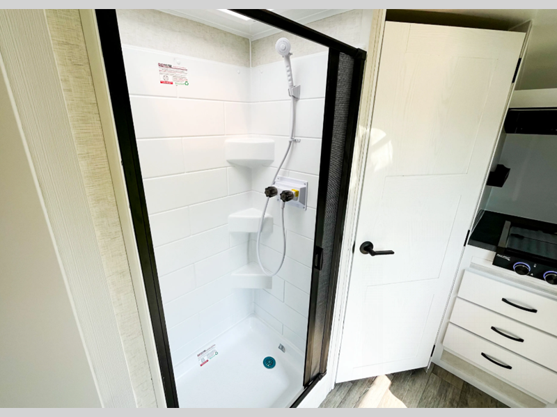 Sleeps 5 Length 18 ft 8 in Ext Width 6 ft 11 in Ext Height 9 ft 8 in Int Height 6 ft 2 in Dry Weight 2650 lbs Fresh Water Capacity 16 gals Grey Water Capacity 32 gals Black Water Capacity 32 gals Tire Size ST235-75R15 Furnace BTU 19000 btu Number Of Bunks 1 Available Beds RV Queen Refrigerator Type Large Cooktop Burners 2 Axle Weight 3500 lbs Water Heater Type Fogatti On Demand AC BTU 13500 btu TV Info 12V 24" HDTV Axle Count 1 Shower Type Wet/Bath Shower Similar Floorplans