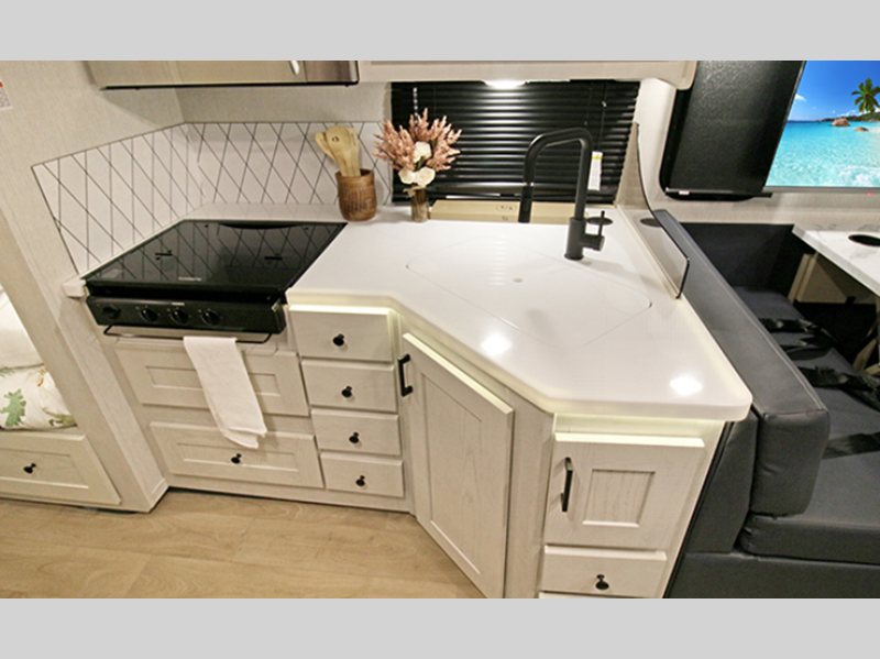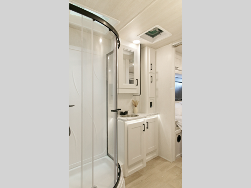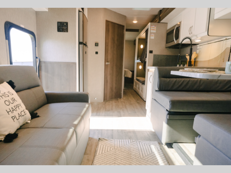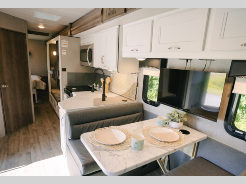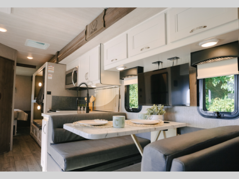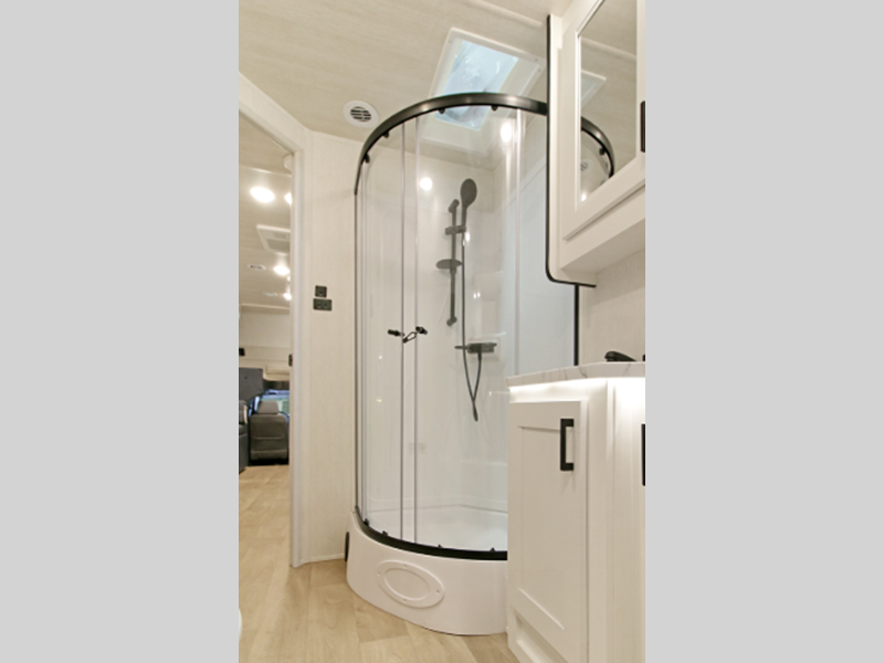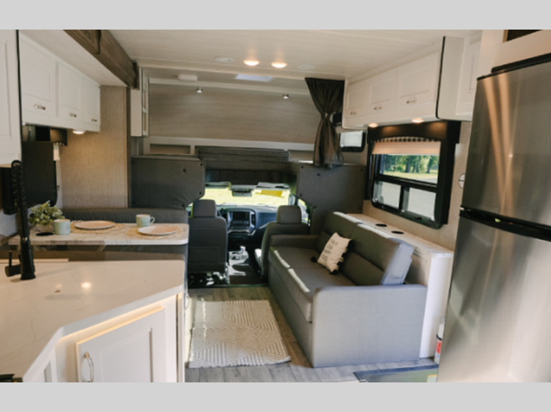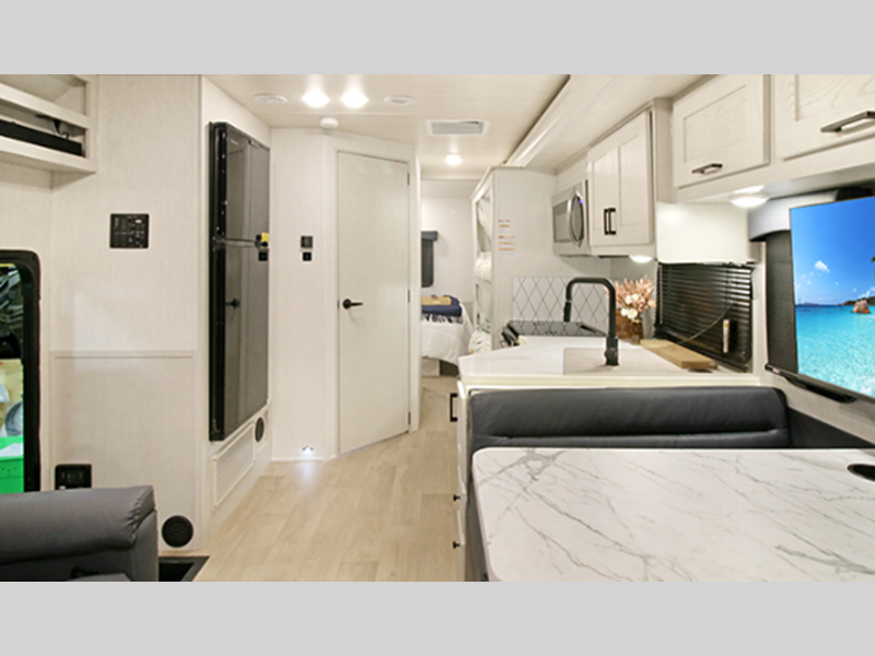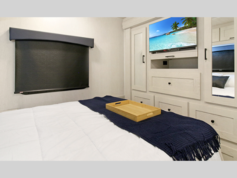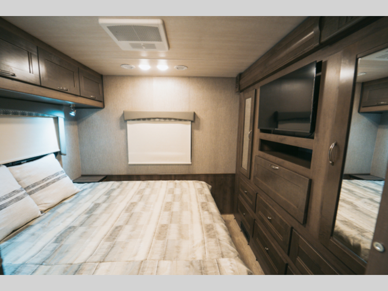 Each model is constructed with composite substrate and a high strength, low allow lightweight steel cage throughout for a durable coach made to last. You will love the interior with its night roller shades, solid surface kitchen countertops, and upgraded flooring. Traveling to your destination is made hassle-free with the touch screen stereo, side view cameras, and Mobileye collision warning with LDW.