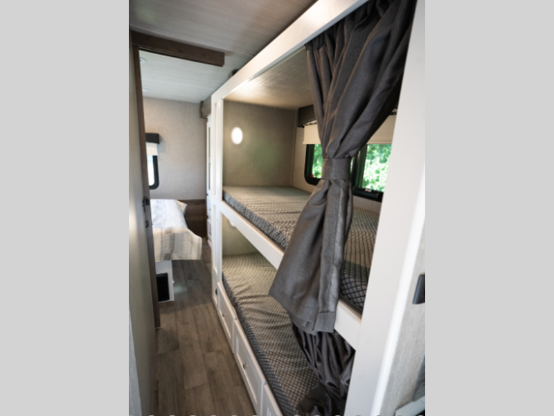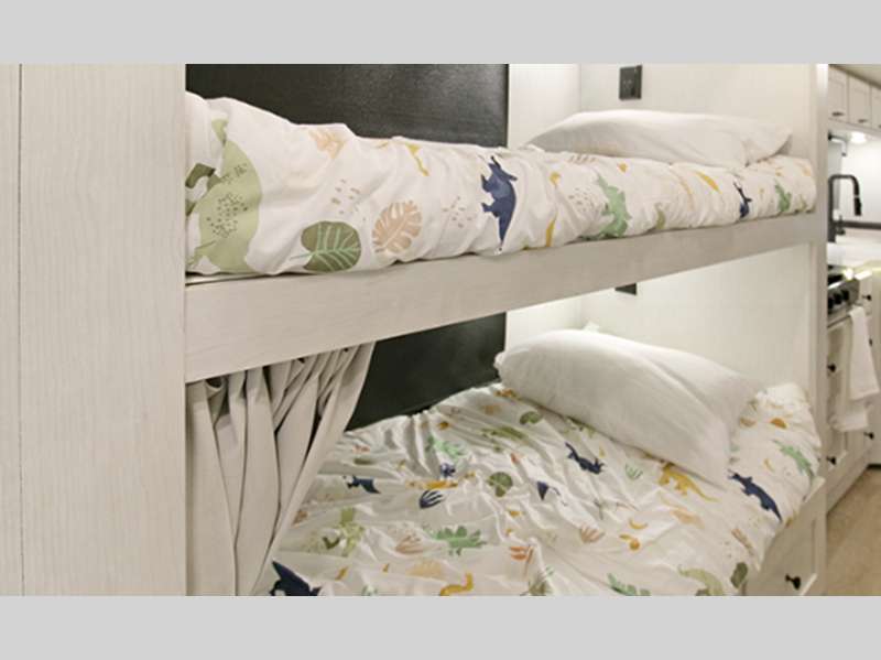 Sleeps 8 Slides 1 Length 34 ft 11 in Ext Width 8 ft 5 in Ext Height 12 ft 2 in Exterior Color Charcoal, Azzuro, Emerald Hitch Weight 12000 lbs GVWR 22000 lbs Fresh Water Capacity 85 gals Grey Water Capacity 50 gals Black Water Capacity 50 gals Tire Size 19.5" Generator 6.0 Onan Diesel Fuel Type Diesel Engine Duramax Chassis Chevy Silverado 6500 Horsepower 350 hp Fuel Capacity 65 gals Wheelbase 243 in Number Of Bunks 3 Torque 700 ft-lb Refrigerator Type 12V Refrigerator Size 10 cu ft Convection Cooking Yes Cooktop Burners 3 Number of Awnings 1 LP Tank Capacity 12.2 gals Water Heater Type On Demand AC BTU 28500 btu Basement Storage 100.5 cu. ft. TV Info LR Flat Screen TV, BR TV Awning Info Electric with LED Lights Gross Combined Weight 34000 lbs Shower Type Radius Electrical Service 50 amp Similar Floorplans