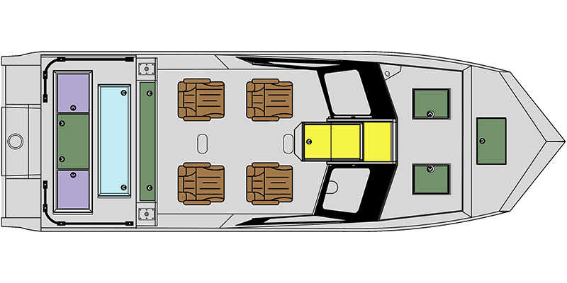 Length 24 ft Dry Weight 2350 lbs Engine Standard Beam 7 ft 10 in Horsepower 300 hp Fuel Capacity 59 gals Hull Material Aluminum Passengers 8