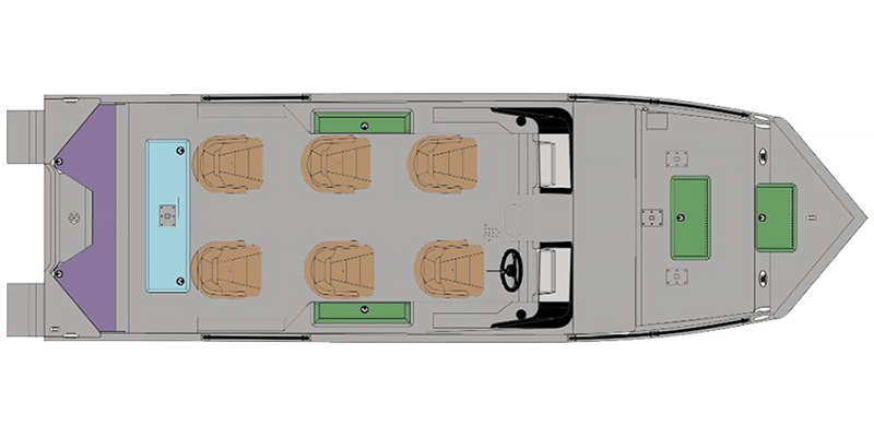 Length 26 ft Dry Weight 2000 lbs Engine Standard Beam 7 ft 10 in Horsepower 300 hp Fuel Capacity 67 gals Hull Material Aluminum Passengers 13