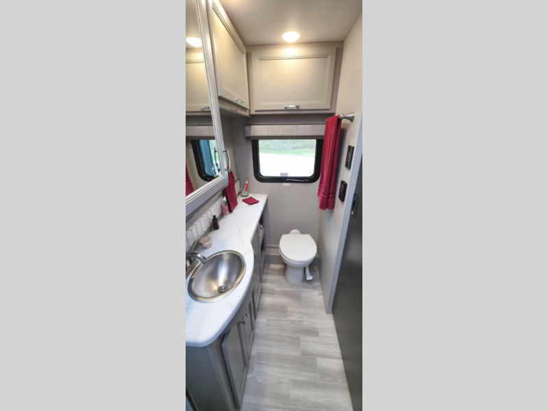 You will be able to tackle any adventure with the Power Stroke 4x4 turbo diesel engine and durable Ford F550 or F600 chassis, depending on the model you choose. There is also a 10,000 lb. or 12,000 lb. hitch to bring the family car along, plus added safety features such, as pre-collision assist and audible lane departure warning. Inside, the residential linoleum throughout will have you feeling right at home, along with Leatherette furniture, solid surface kitchen countertops, and a glass shower door in the bath.