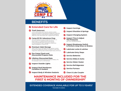 Camp EZ RV is not responsible for any misprints, typos, or errors found in our website pages. Any price listed excludes sales tax, registration tags, and delivery fees. Manufacturer pictures, specifications, and features may be used in place of actual units on our lot. Please contact us @866-422-6739 for availability as our inventory changes rapidly. All calculated payments are an estimate only and do not constitute a commitment that financing or a specific interest rate or term is available.