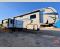 Wow check out this fifth wheel with four slide outs, a middle bunkhouse with a loft, plus two power awnings! The main living area includes 60" theater seating across from the entertainment center and fireplace, a hide-a-bed sofa, and a free-standing dinette to enjoy meals together. Your guests will love having their own space in the bunkhouse that includes a jackknife sofa, a flip-down bunk, plus a dresser and a TV. Head to the front private bedroom for a great night's rest on the slide out king bed, and there is a walk-in wardrobe with washer and dryer prep for full-time living!